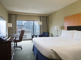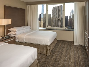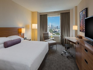 Chicago Marriott Downtown Magnificent Mile (NAR/CSRE/International) Enjoy the brand new fitness center with the latest LifeFitness equipment and online classes via Fitness OnDemand, or grab a bite at Rush Street Pantry or Harvest Grill, featuring farm fresh ingredients. In-room coffee/tea, an on-site beauty shop and 24-hour room service are some other hotel features. This hotel is located in the Near North area, or 3 miles from the McCormick Place Convention Center.