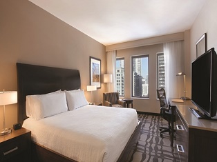 Palmer House Hilton (WCR) Take advantage of this hotel's 5,000 square-foot workout and class space; it includes a jacuzzi and the option to hire a personal trainer. Additionally, there is a full-service spa menu with both classic and trending services. Dining options include: Lockwood Bar, Potter’s and the award-winning Lockwood Restaurant. This hotel is located in the Chicago Loop area, or 2.5 miles from the McCormick Place Convention Center.