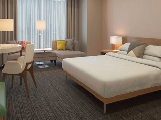 Marriott Marquis Chicago This hotel features the signature Marriott Great Room lobby with a Grab ‘n Go marketplace, a fitness center and complimentary WiFi in the lobby and public areas. This hotel is located in the South Loop area, or 0.7 miles from the McCormick Place Convention Center. This hotel is within walking distance of the convention center.
